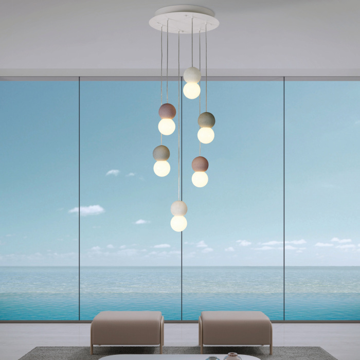 Осветительный прибор создан в стиле Джапанди. Используются лампочки с цоколем E27 мощностью 120 Вт, в количестве 6 шт. Основной цвет модели 7622: Белый,Коричневый,Серый.
