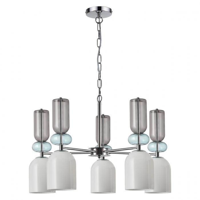 Осветительный прибор создан в стиле Модерн. Подходят лампочки с цоколем E14 мощностью 200 Вт, количеством 5 ед. Основной цвет модели 5235/5: Белый,Голубой.