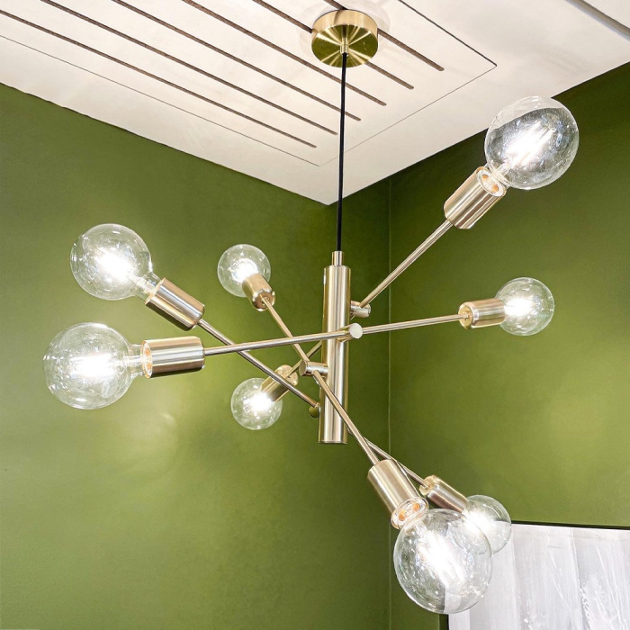 Осветительный прибор создан в стиле Дизайнерский. Подходят лампочки с цоколем E27 мощностью 320 Вт, в количестве 8 шт. Основной цвет модели 99811: Латунь.
