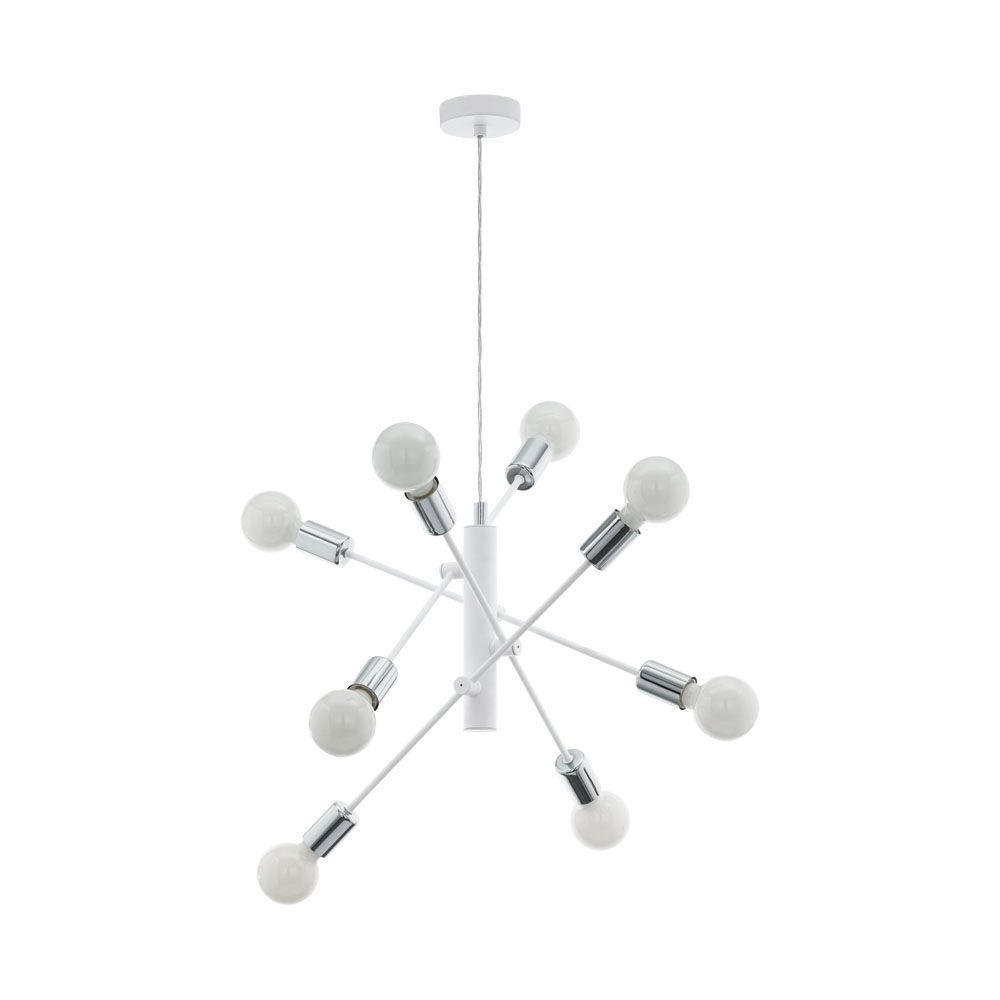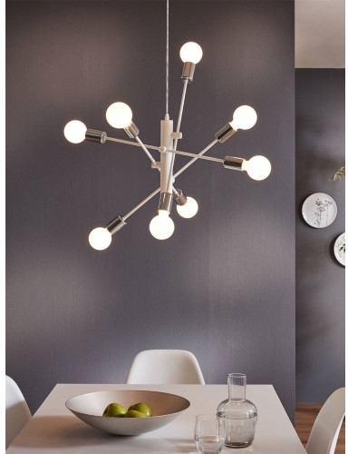Осветительный прибор сделан в стиле Хай-тек. Подходят лампы с цоколем E27 мощностью 480 Вт, в количестве 8 ед. Цвет модели 98017: Белый.