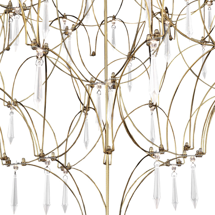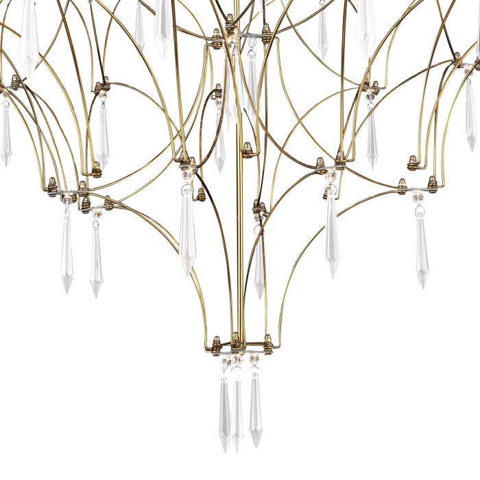 Осветительный прибор разработан в стиле Арт-Деко. Подходят лампы цоколя LED мощностью 57 Вт, в количестве 114 шт.