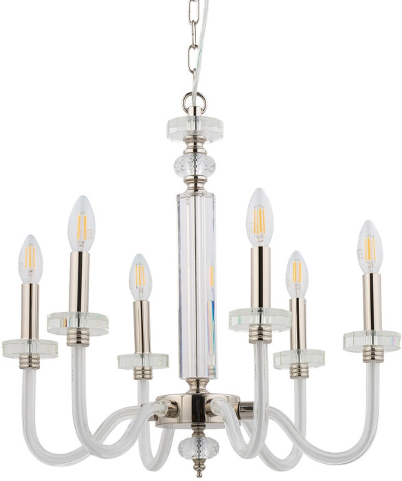 Осветительный прибор сделан в стиле Классический. Подходят лампочки с цоколем E14 мощностью 240 Вт, количеством 6 ед. Основной цвет модели 8154: Хром.