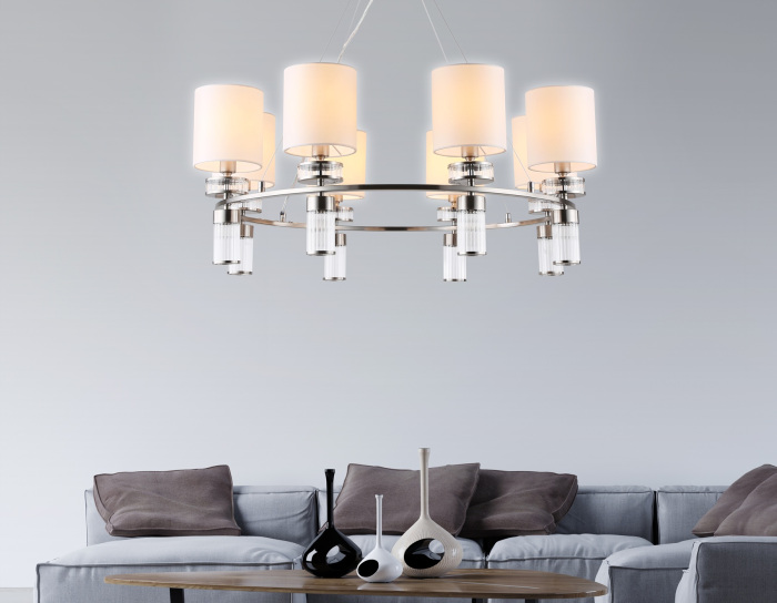Осветительный прибор сделан в стиле Модерн. Применяются лампочки цоколя E14 мощностью 320 Вт, в количестве 8 ед. Цвет модели LH71293: Белый.