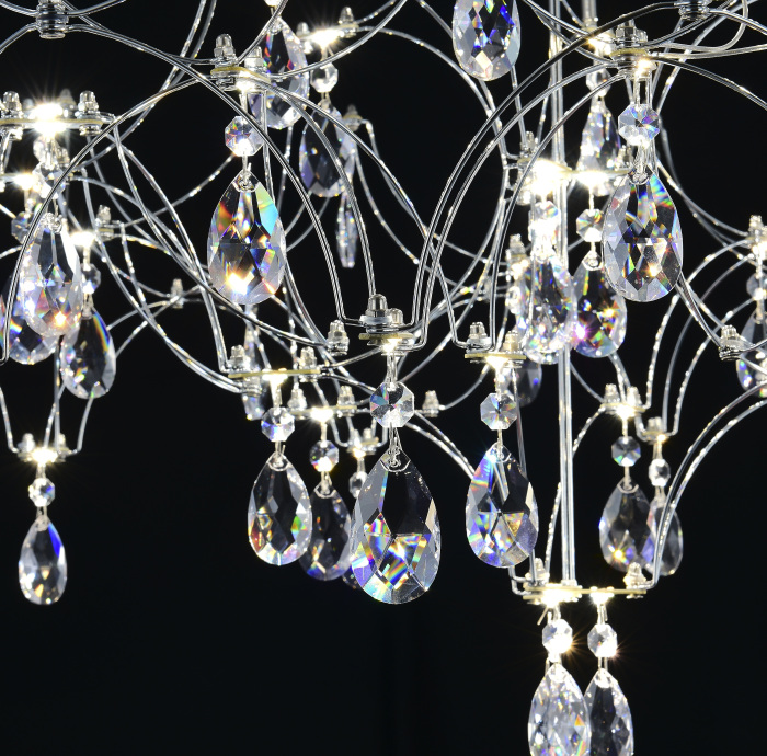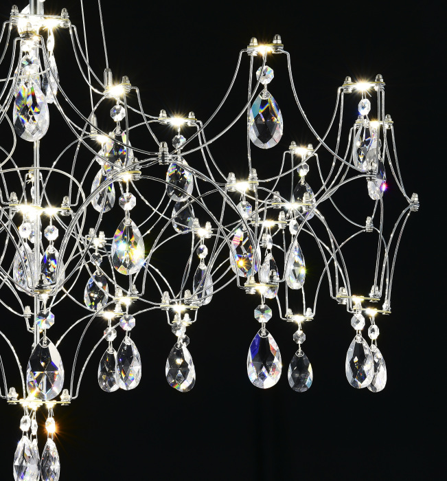 Осветительный прибор выполнен в стиле Арт-Деко. Задействуются лампочки цоколя LED мощностью 29 Вт, количеством 57 шт.