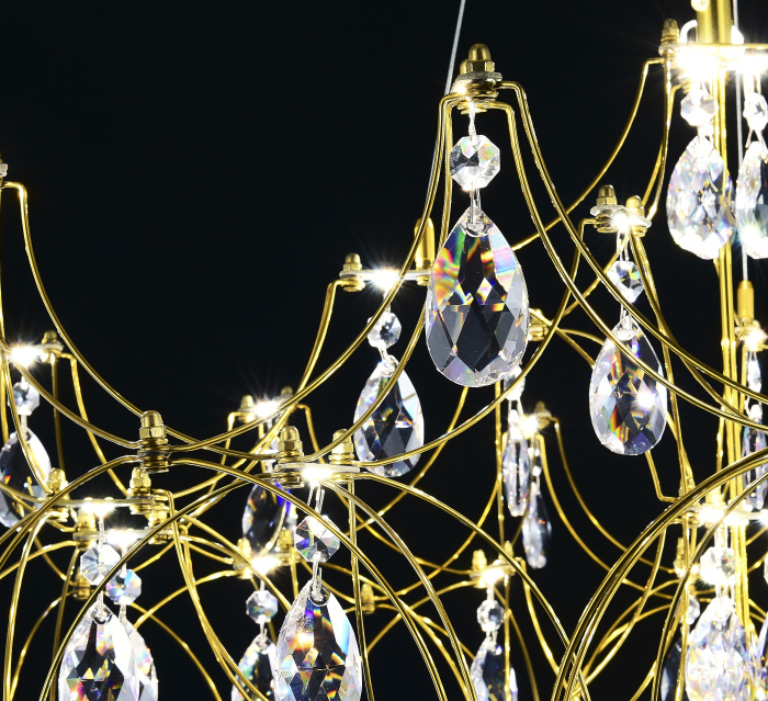 Осветительный прибор создан в стиле Арт-Деко. Задействуются лампочки цоколя LED мощностью 29 Вт, количеством 57 шт.
