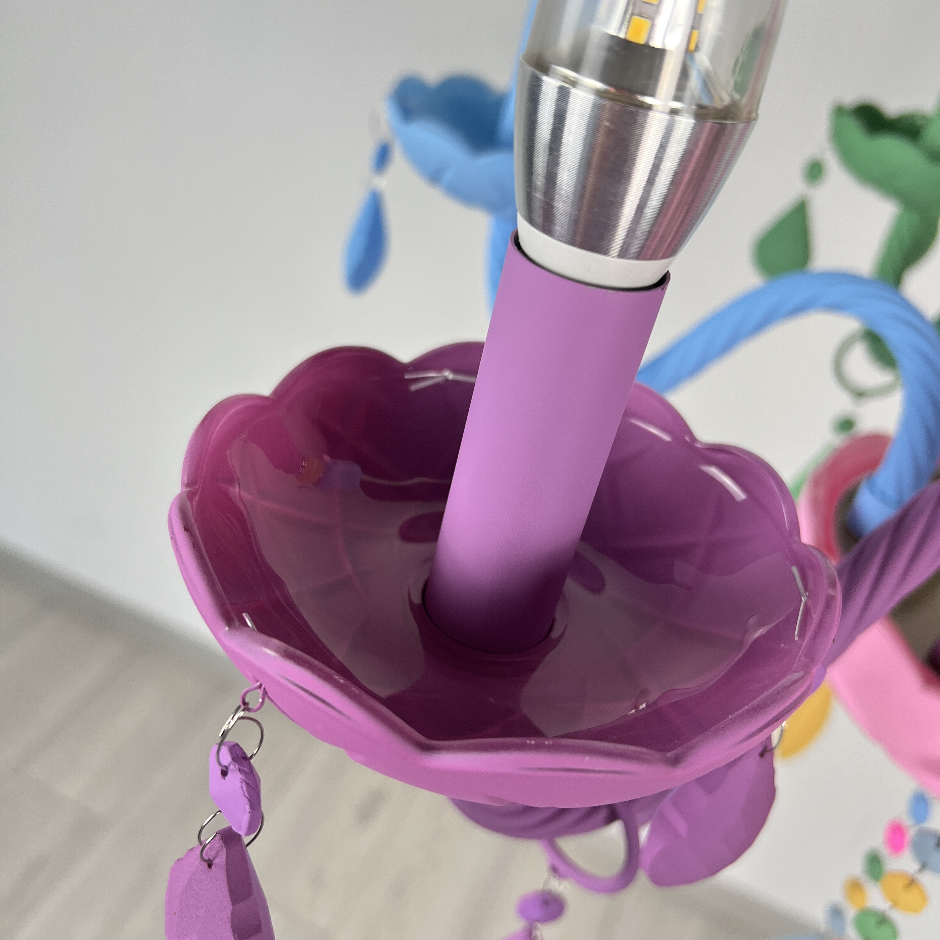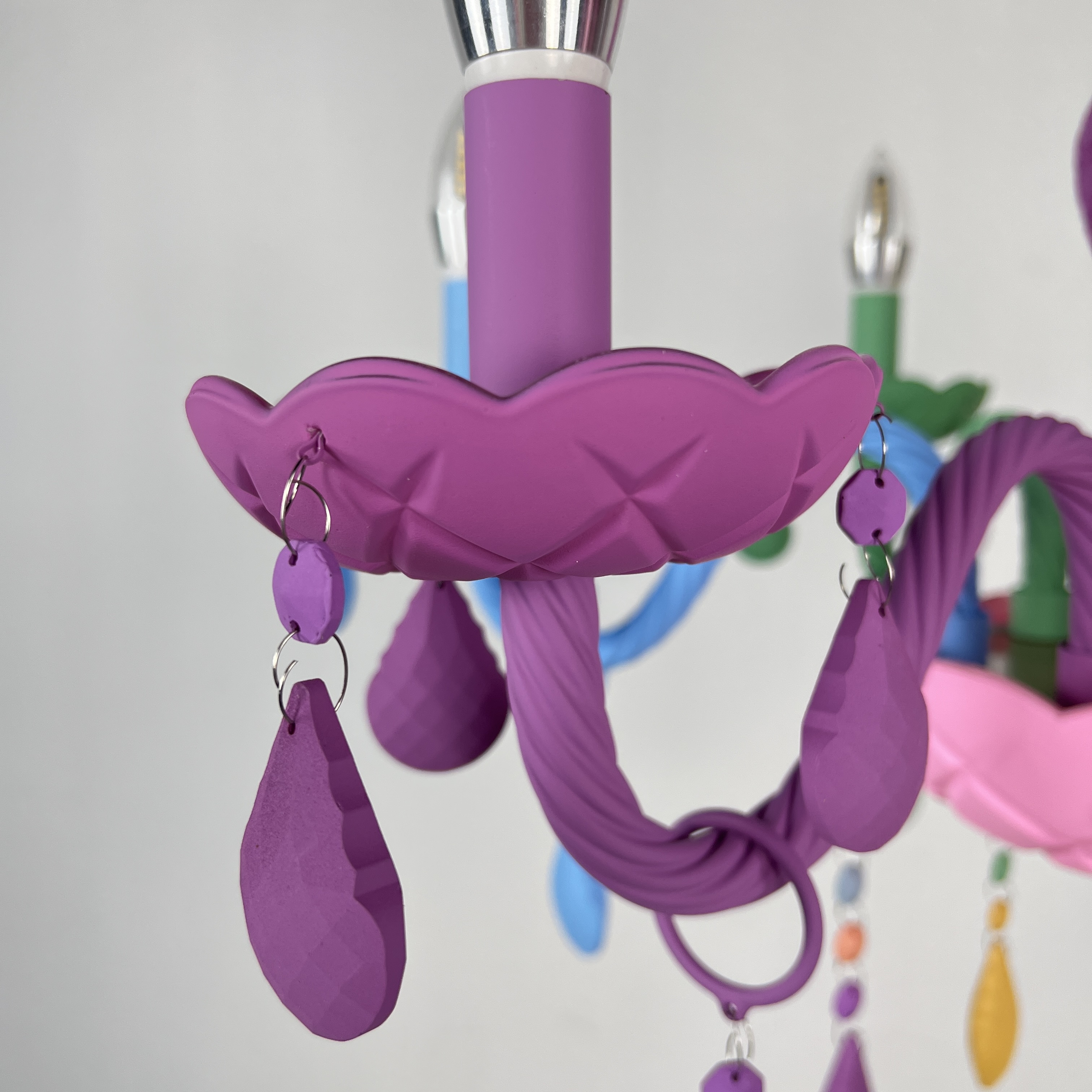 Осветительный прибор разработан в стиле Современный. Применяются лампы с цоколем E14 мощностью 240 Вт, в количестве 6 ед. Цвет модели 196805-26: Голубой,Жёлтый,Зелёный,Разноцветный,Розовый.