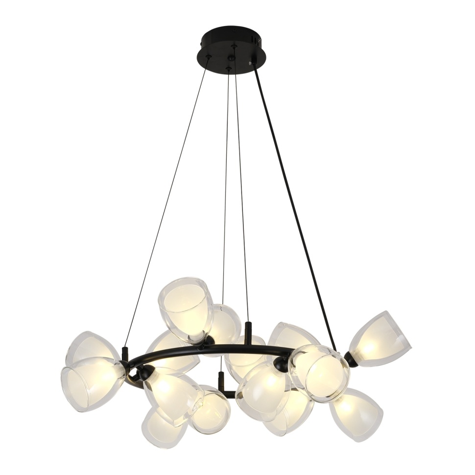 Осветительный прибор выполнен в стиле Модерн. Задействуются лампочки с цоколем G9 мощностью 640 Вт, в количестве 16 шт.