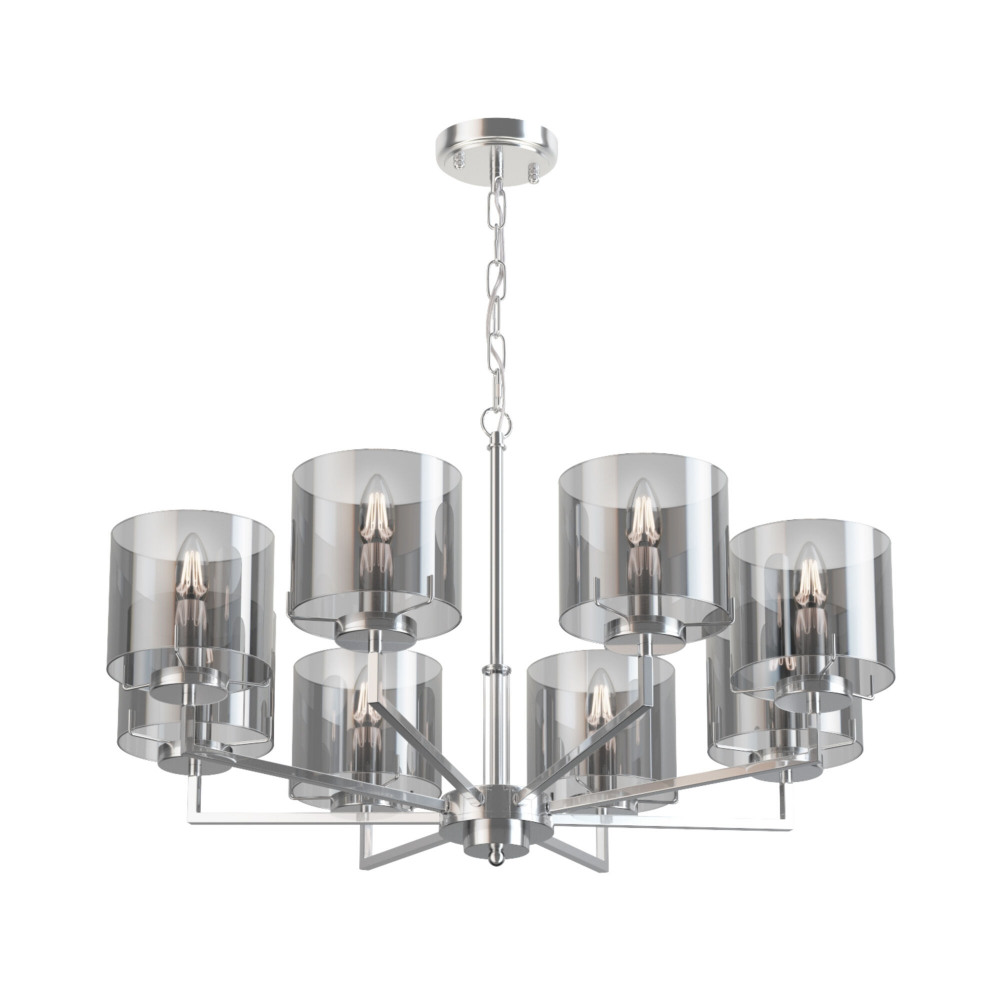 Осветительный прибор разработан в стиле Модерн. Применяются лампочки с цоколем E14 мощностью 320 Вт, количеством 8 ед. Основной цвет модели FR5096PL-08CH: Хром.