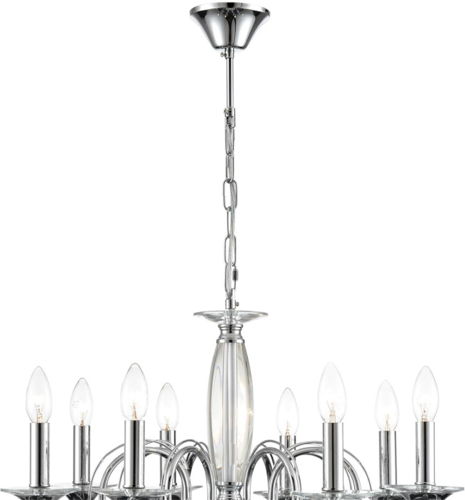 Осветительный прибор выполнен в стиле Классический. Подходят лампочки с цоколем E14 мощностью 320 Вт, в количестве 8 шт. Основной цвет модели 8032/8: Хром.