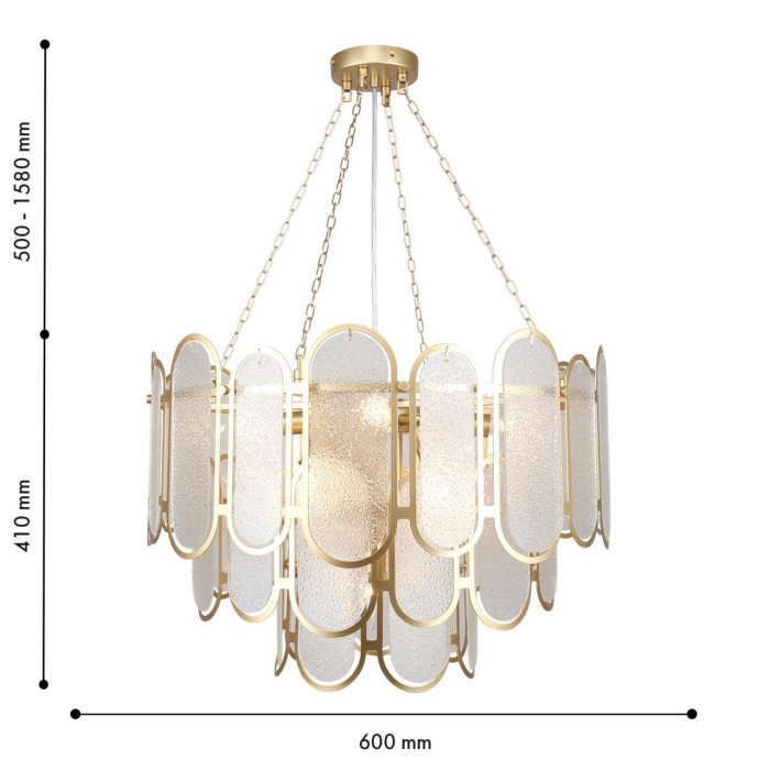 Осветительный прибор создан в стиле Классический. Задействуются лампы с цоколем E14 мощностью 360 Вт, в количестве 9 ед.