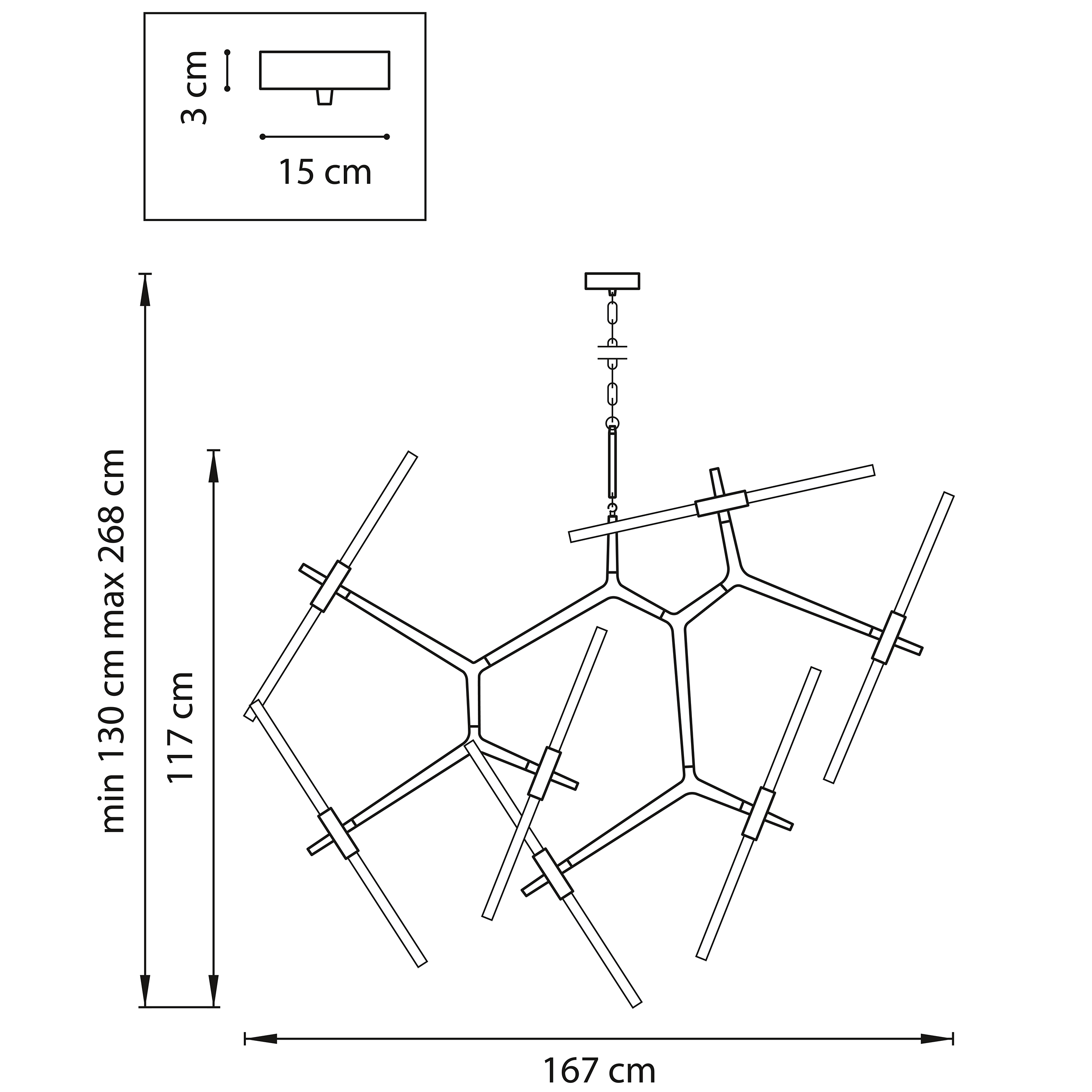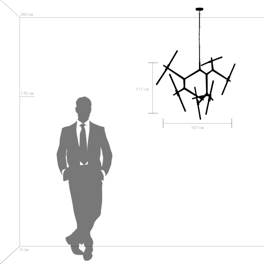 Осветительный прибор разработан в стиле Хай-тек. Используются лампы с цоколем G9 мощностью 560 Вт, в количестве 14 ед. Цвет модели 742147: Чёрный.