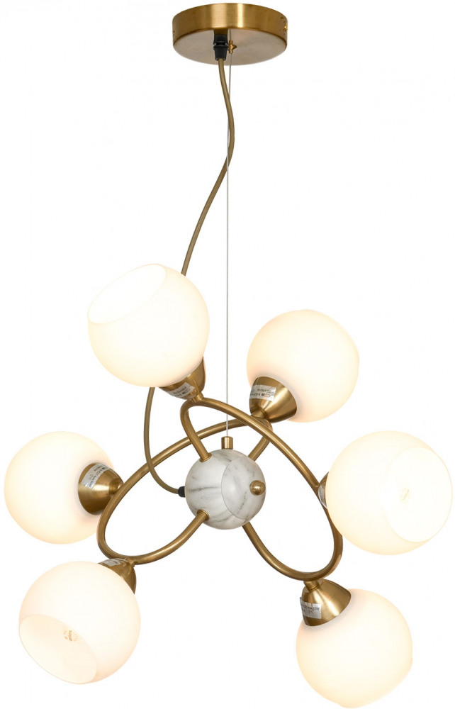 Осветительный прибор сделан в стиле Модерн. Задействуются лампы цоколя E27 мощностью 240 Вт, количеством 6 ед. Основной цвет модели LSP-8412: Белый.