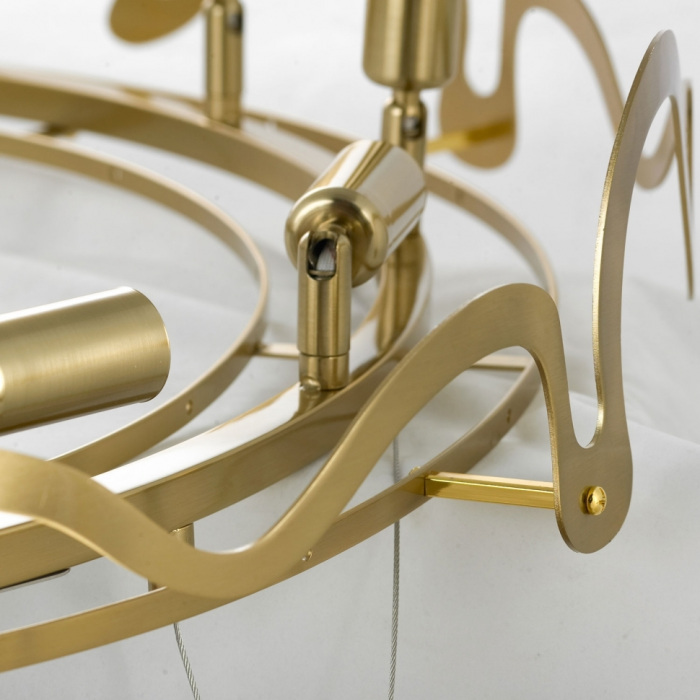 Осветительный прибор выполнен в стиле Модерн. Применяются лампы цоколя E14 мощностью 400 Вт, в количестве 10 шт.