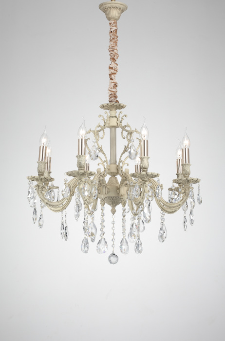 Осветительный прибор выполнен в стиле Барокко. Задействуются лампочки цоколя E14 мощностью 480 Вт, количеством 8 шт. Цвет модели Barletta 1730.8 Cream White: Бежевый.