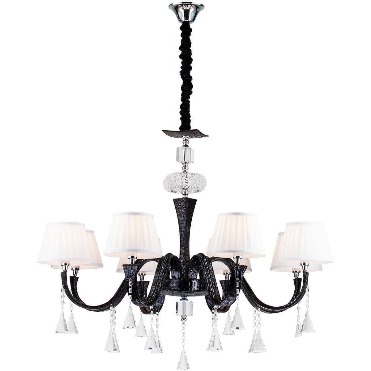 Осветительный прибор создан в стиле Арт-Деко. Подходят лампы с цоколем E14 мощностью 480 Вт, в количестве 8 ед. Цвет модели Pelle Nerre 120.8: Чёрный.