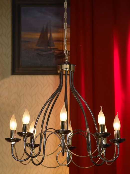 Осветительный прибор выполнен в стиле Замковый. Применяются лампы цоколя E14 мощностью 320 Вт, в количестве 8 шт. Основной цвет модели LSA-4613-08: Хром.