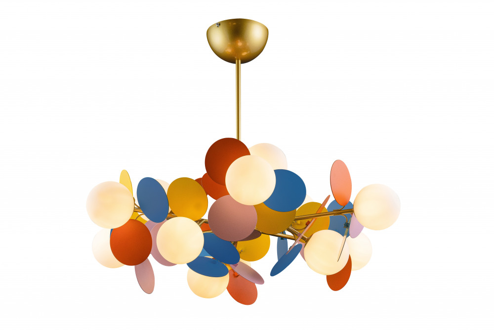 Осветительный прибор сделан в стиле Модерн. Подходят лампочки с цоколем G9 мощностью 60 Вт, количеством 12 ед. Основной цвет модели 10008/12 mult: Голубой,Жёлтый,Красный,Разноцветный.
