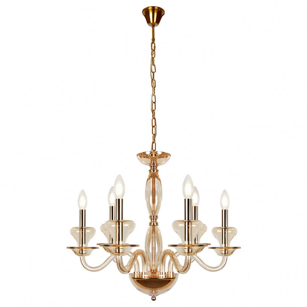 Осветительный прибор выполнен в стиле Классический. Используются лампочки с цоколем E14 мощностью 240 Вт, в количестве 6 шт. Основной цвет модели P9448-6 Gold: Янтарный.