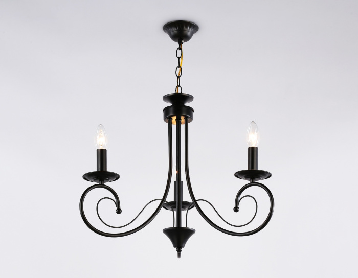 Осветительный прибор создан в стиле Классический. Подходят лампы цоколя E14 мощностью 120 Вт, количеством 3 ед. Основной цвет модели TR9606: Чёрный.