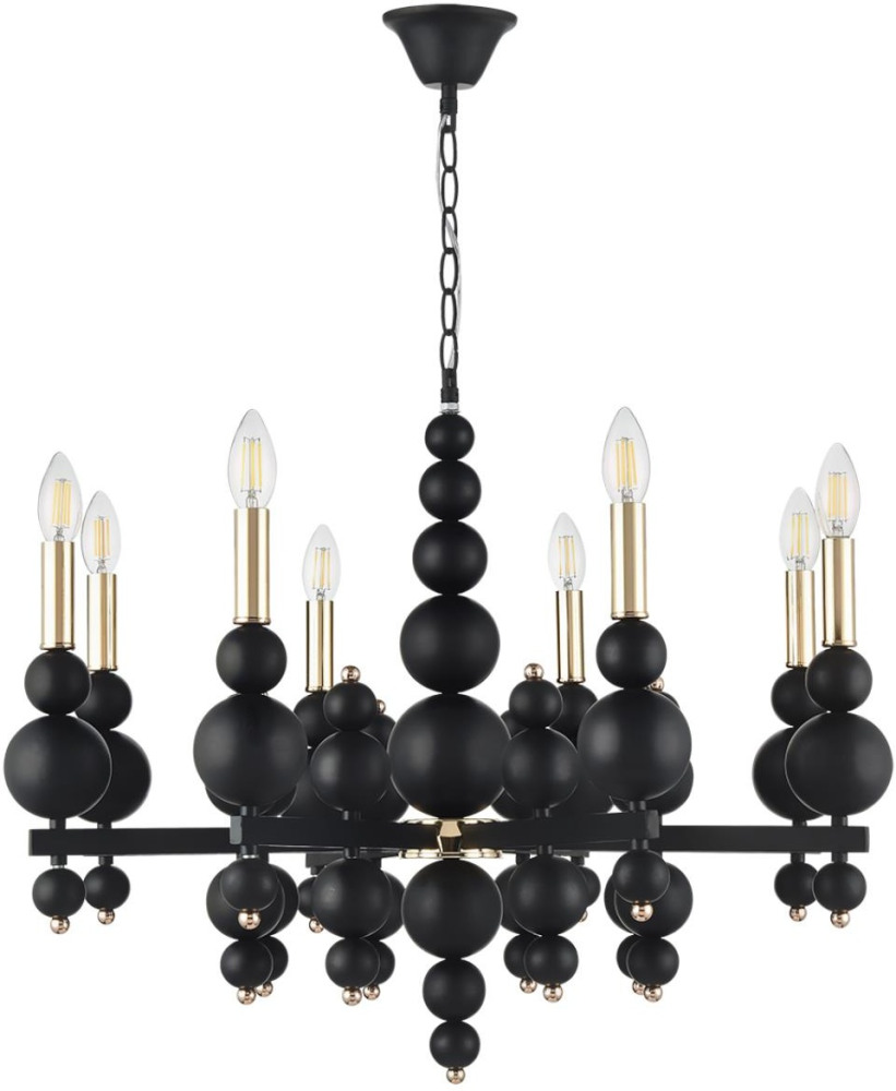 Осветительный прибор сделан в стиле Модерн. Применяются лампы цоколя E14 мощностью 320 Вт, количеством 8 ед. Основной цвет модели 8106/8: Чёрный.