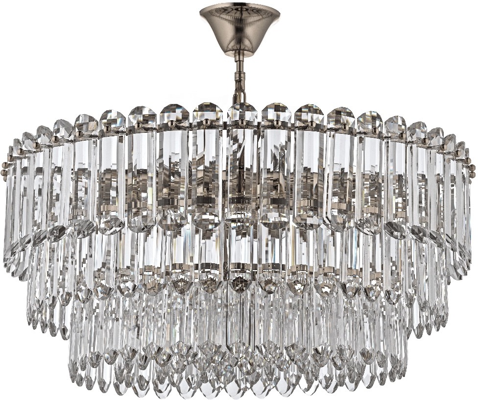 Осветительный прибор создан в стиле Арт-Деко. Используются лампочки цоколя E14 мощностью 560 Вт, количеством 14 шт. Цвет модели Olivetta E 1.5.60.100 N: Прозрачный.