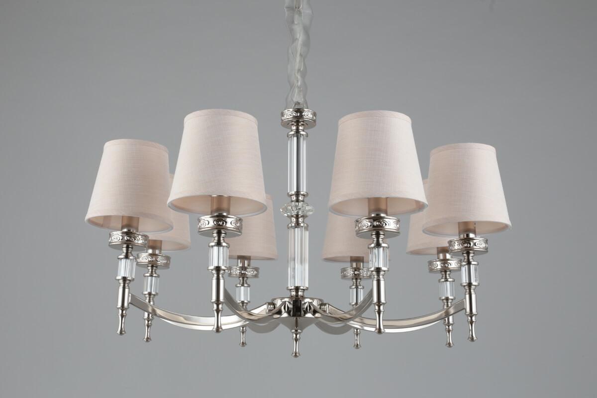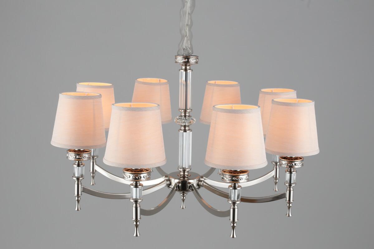 Осветительный прибор выполнен в стиле Классический. Подходят лампочки с цоколем E14 мощностью 320 Вт, в количестве 8 шт. Основной цвет модели OML-87203-08: Бежевый.