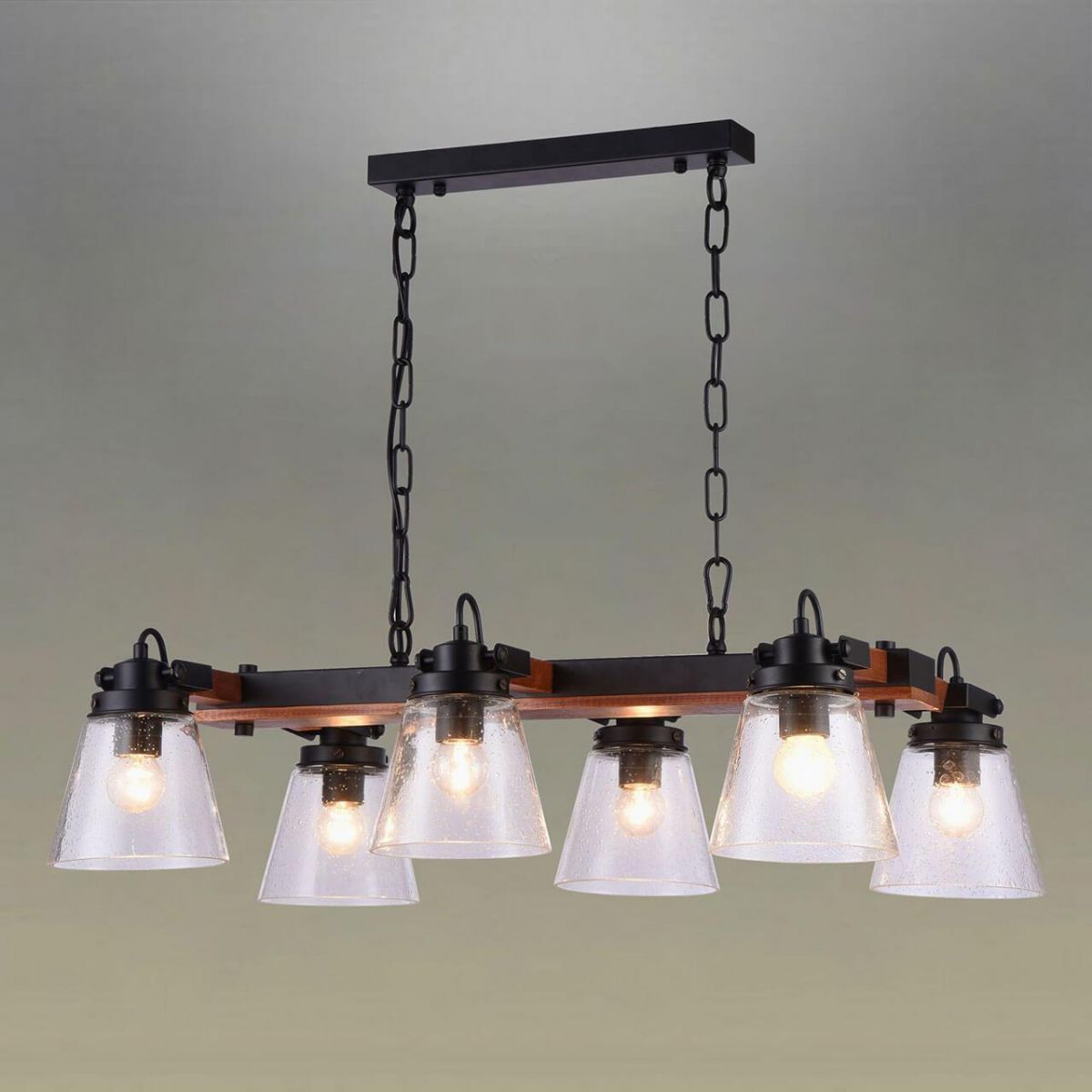 Осветительный прибор выполнен в стиле Кантри. Подходят лампочки с цоколем E27 мощностью 240 Вт, в количестве 6 шт. Основной цвет модели OML-51003-06: Чёрный.