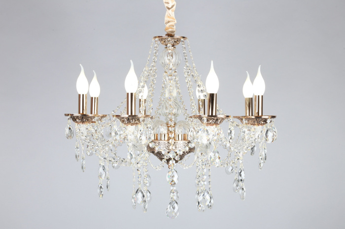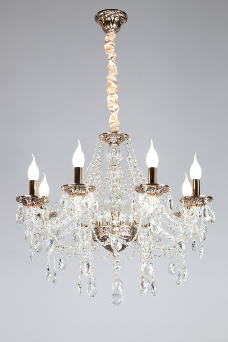 Осветительный прибор сделан в стиле Классический. Применяются лампочки цоколя E14 мощностью 320 Вт, в количестве 8 ед. Цвет модели OML-74803-08: Золотой.