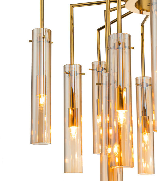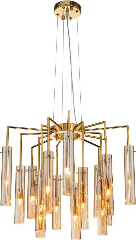 Осветительный прибор сделан в стиле Модерн. Используются лампы с цоколем G9 мощностью 375 Вт, в количестве 15 ед. Цвет модели 4500-15P: Янтарный.