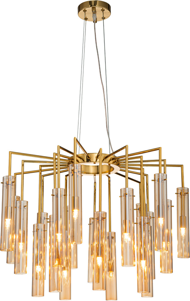 Осветительный прибор разработан в стиле Модерн. Задействуются лампы с цоколем G9 мощностью 525 Вт, количеством 21 шт. Цвет модели 4500-21P: Янтарный.