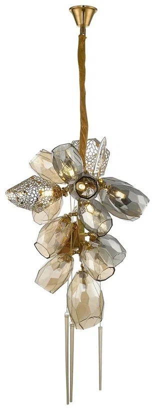 Осветительный прибор выполнен в стиле Арт-Деко. Подходят лампочки с цоколем G9 мощностью 600 Вт, в количестве 15 шт. Основной цвет модели WE243.15.503: Прозрачный,Серый,Янтарный.