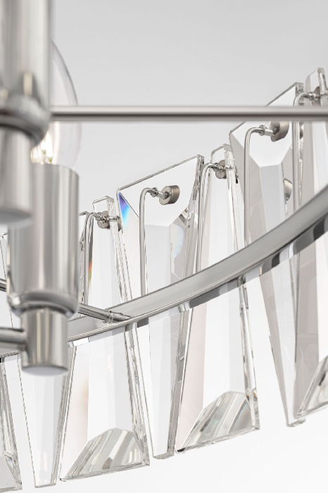 Осветительный прибор сделан в стиле Классический. Используются лампы цоколя E14 мощностью 480 Вт, количеством 8 ед. Основной цвет модели MOD043PL-08CH: Прозрачный.