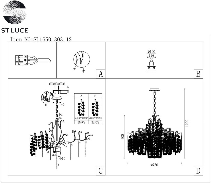 Люстра подвесная SL1650.303.12 изготавливается брендом ST Luce, которая относится к коллекции Ravello. Габаритные параметры: высота 500 мм, диаметр 750 мм. Люстры ST Luce SL1650.303.12 изготовлены с использованием высококачественных и прочных материалов, таких как: металл, плафон - Стекло,Металл.