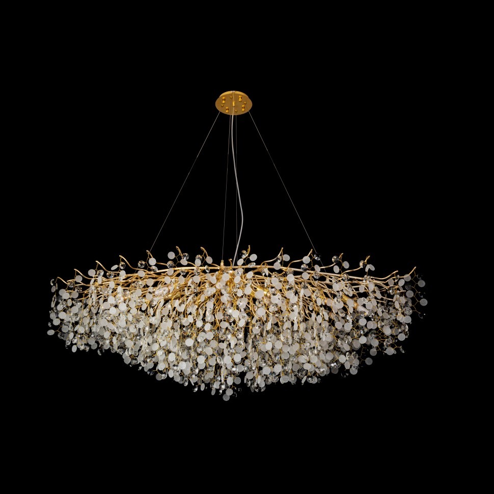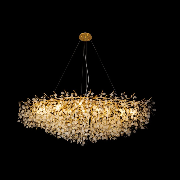 Люстра подвесная 7204-L1600 GD от бренда iLamp, относящаяся к коллекции Savage. Размеры: длина 1600 мм, ширина 700 мм. Люстры iLamp 7204-L1600 GD произведены из высококачественных и прочных материалов: Алюминий, плафон - стекло.