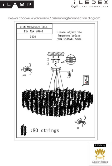 Осветительный прибор выполнен в стиле Арт-Деко. Используются лампы цоколя E14 мощностью 320 Вт, в количестве 8 шт. Основной цвет модели 8006-D600 GD: Прозрачный.