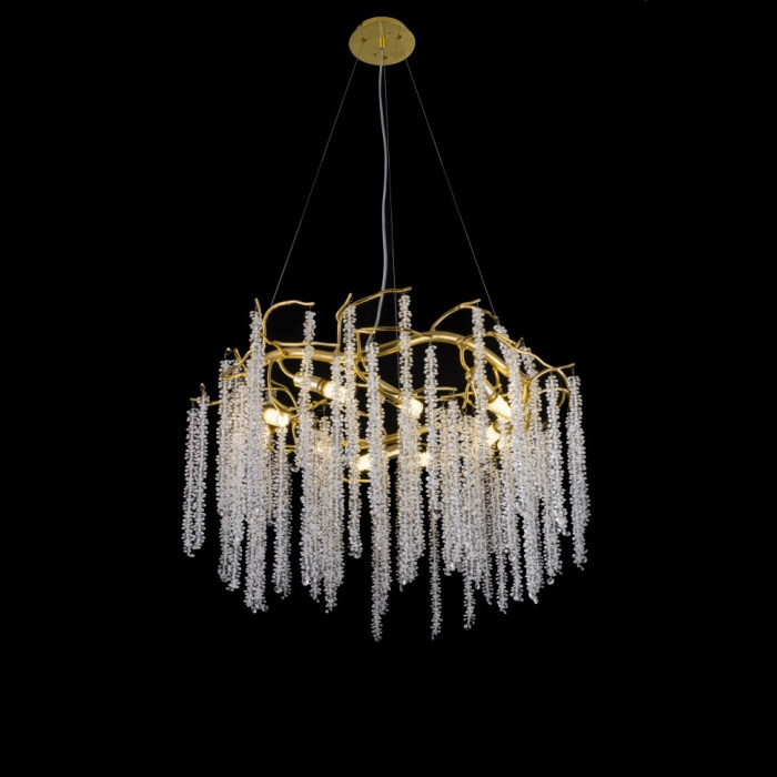 Осветительный прибор создан в стиле Арт-Деко. Подходят лампочки цоколя E14 мощностью 400 Вт, в количестве 10 ед. Цвет модели 8813-D800 GD: Прозрачный.