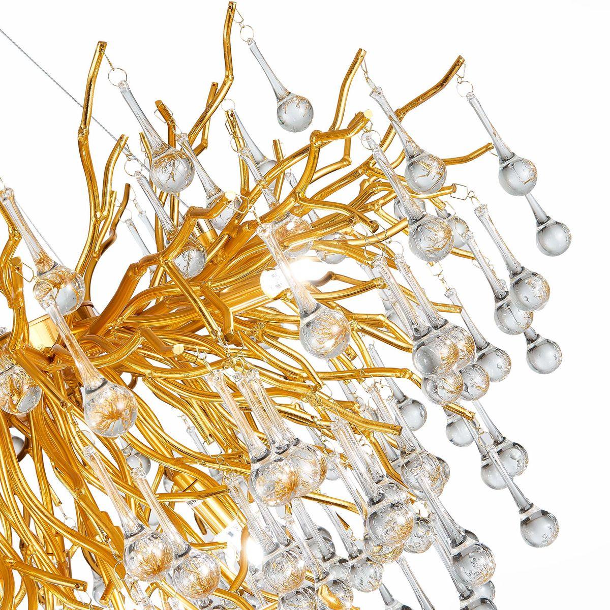 Осветительный прибор создан в стиле Арт-Деко. Используются лампочки цоколя G9 мощностью 45 Вт, количеством 9 шт. Цвет модели SL1651.203.09: Золотой.
