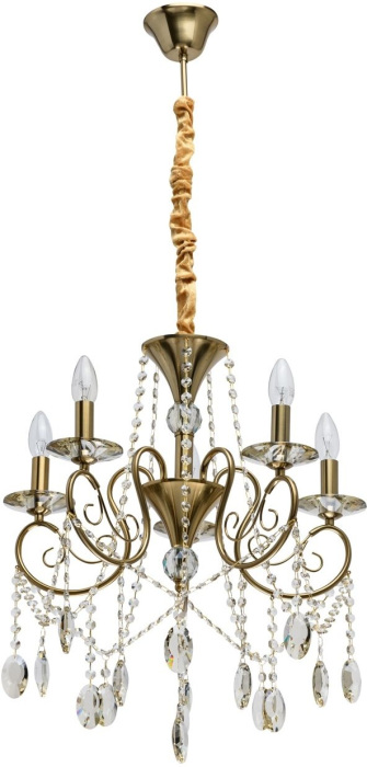 Осветительный прибор разработан в стиле Барокко. Используются лампочки цоколя E14 мощностью 200 Вт, количеством 5 шт. Цвет модели 482016305: Бронза.
