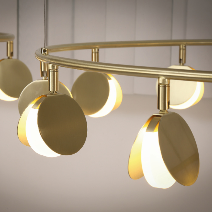 Осветительный прибор сделан в стиле Контемпорари. Применяются лампы с цоколем LED мощностью 30 Вт. Цвет модели 7262: Золотой.
