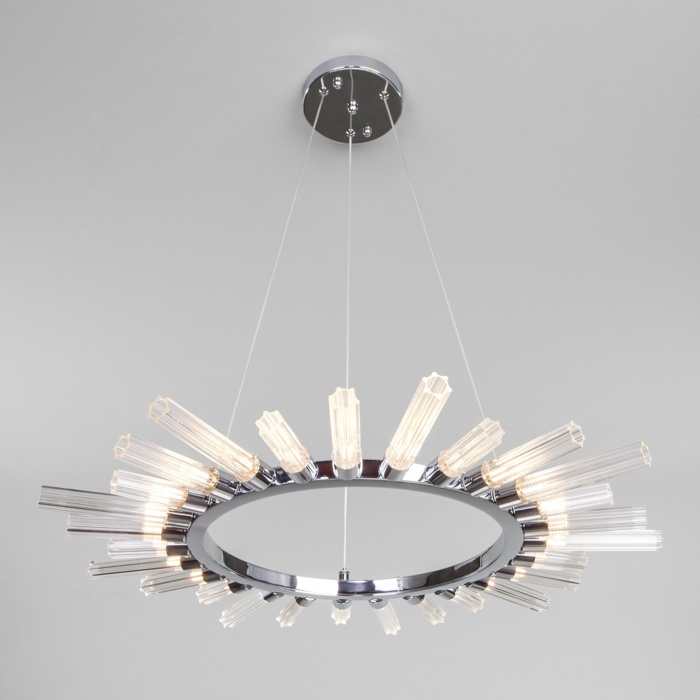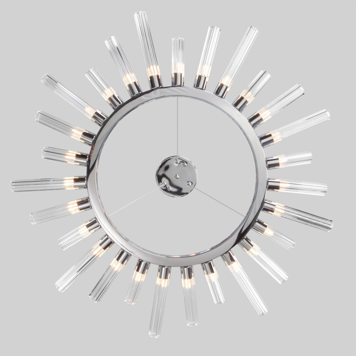 Осветительный прибор разработан в стиле Модерн. Применяются лампочки цоколя G4 мощностью 81 Вт, в количестве 27 ед. Цвет модели 558: Прозрачный,Хром.