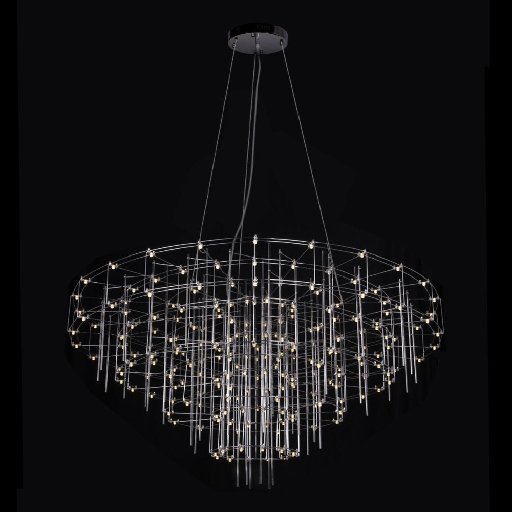 Осветительный прибор сделан в стиле Арт-Деко. Задействуются лампы с цоколем LED мощностью 72 Вт. Цвет модели 10258/1200: Хром.