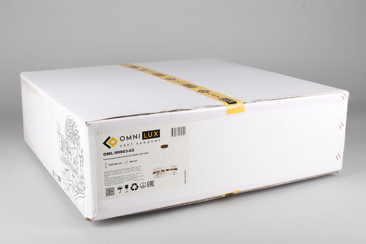 Осветительный прибор выполнен в стиле Современный. Подходят лампы с цоколем LED мощностью 62 Вт, количеством 1 шт. Цвет модели OML-99903-62: Прозрачный.
