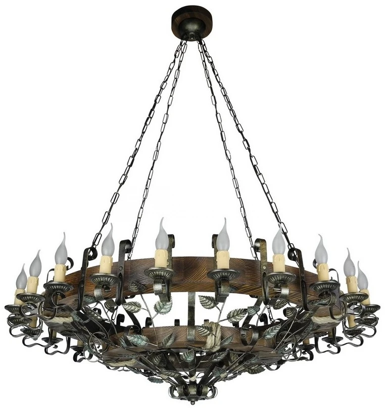 Осветительный прибор разработан в стиле Кантри. Применяются лампы цоколя E14 мощностью 960 Вт, в количестве 24 шт. Основной цвет модели Береза-24: Зелёный,Коричневый.