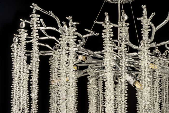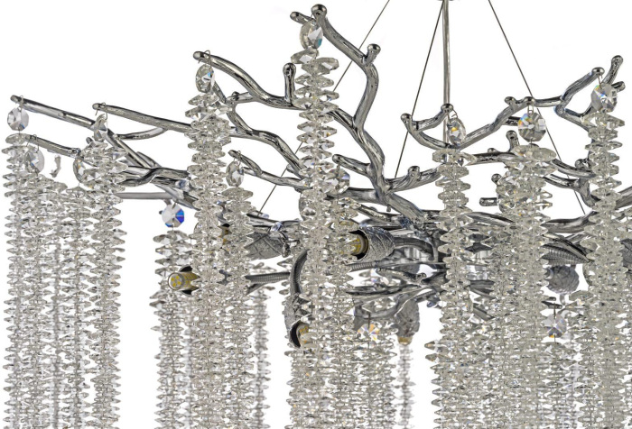 Осветительный прибор разработан в стиле Арт-Деко. Используются лампочки цоколя G9, в количестве 10 ед. Цвет модели Tavenna H 1.5.76.100 N: Прозрачный.