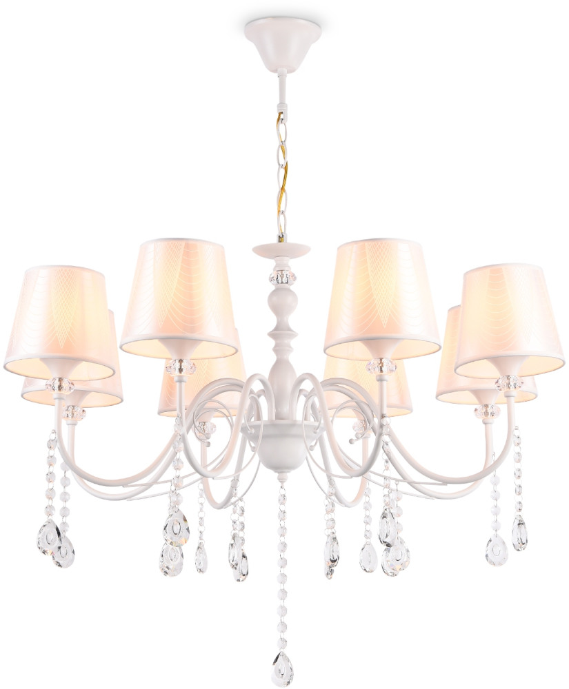 Осветительный прибор выполнен в стиле Классический. Используются лампочки с цоколем E27 мощностью 320 Вт, в количестве 8 шт. Основной цвет модели TR4605: Белый.