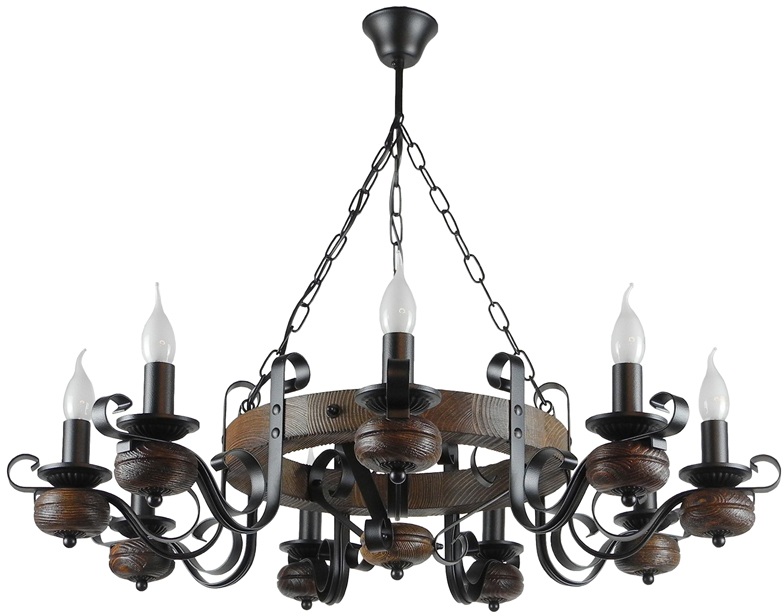 Осветительный прибор сделан в стиле Замковый. Подходят лампы цоколя E14 мощностью 360 Вт, количеством 9 ед. Основной цвет модели Уют-9: Коричневый.