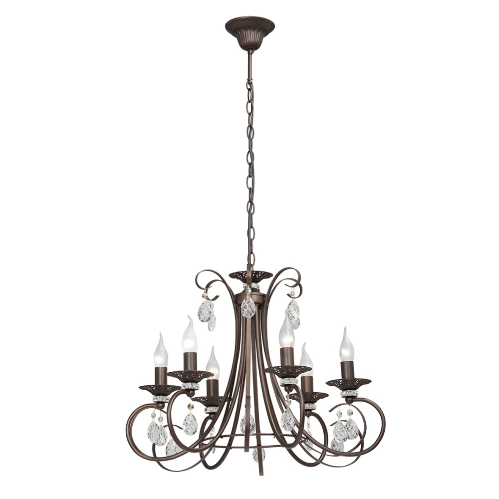 Осветительный прибор создан в стиле Классический. Применяются лампы цоколя E14 мощностью 240 Вт, в количестве 6 шт. Основной цвет модели V1681-8/6: Бронза.