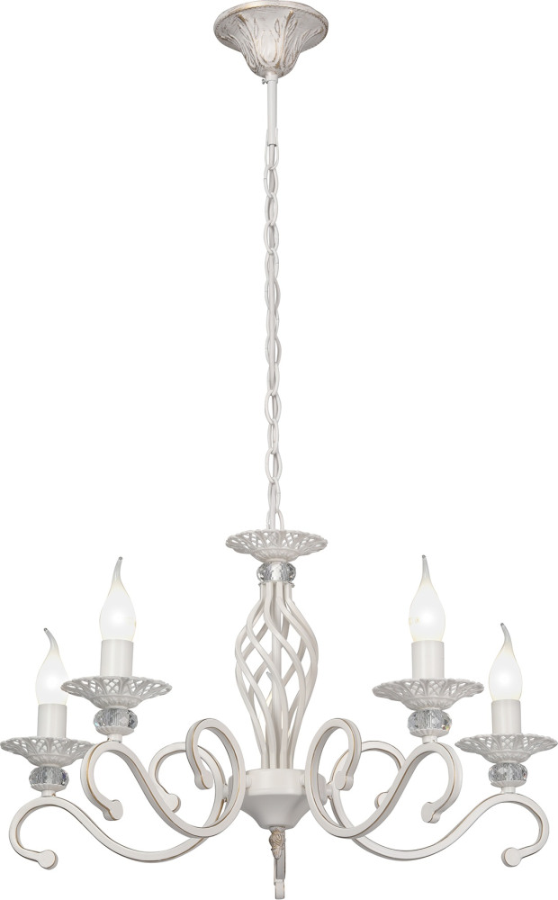 Осветительный прибор выполнен в стиле Классический. Используются лампочки цоколя E14 мощностью 200 Вт, количеством 5 шт. Цвет модели V1692-0/5: Белый.