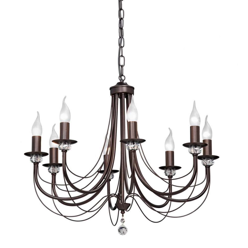 Осветительный прибор выполнен в стиле Классический. Используются лампочки цоколя E14 мощностью 480 Вт, количеством 8 шт.