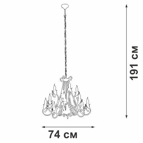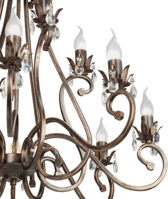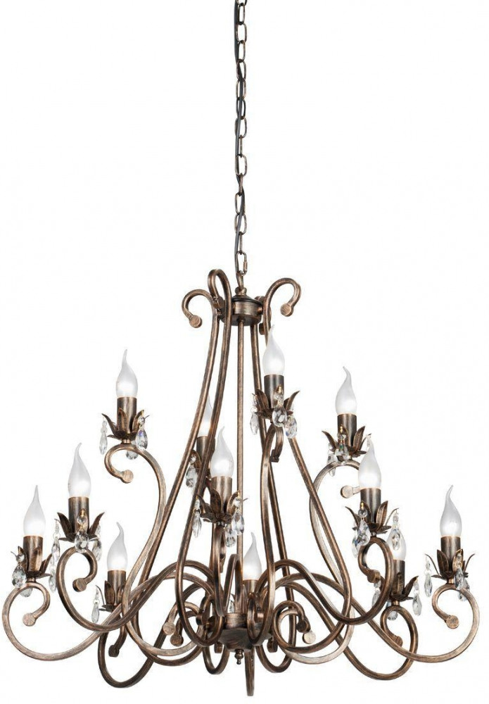 Осветительный прибор выполнен в стиле Классический. Применяются лампочки с цоколем E14 мощностью 480 Вт, в количестве 12 шт.
